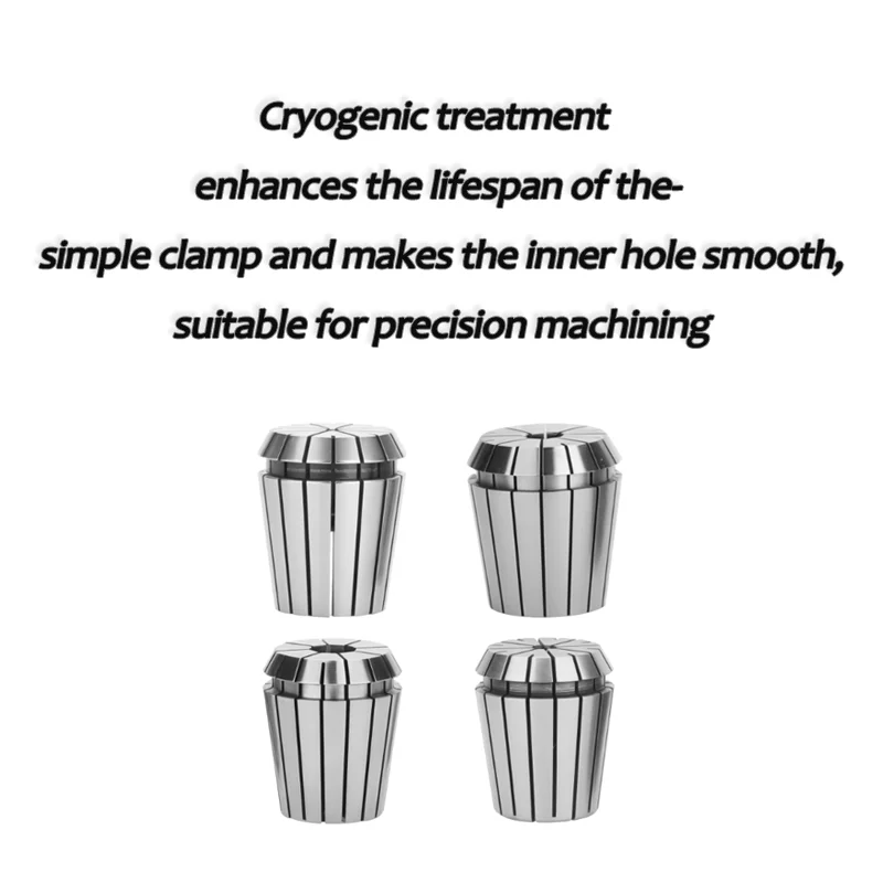 Upgrade your machining precision with this 7-piece ER11 collet set, designed for drill press and milling machines equipped with an ER11 chuck. Each collet undergoes advanced cryogenic treatment, significantly enhancing its lifespan and ensuring an ultra-smooth inner surface — ideal for high-accuracy work.
